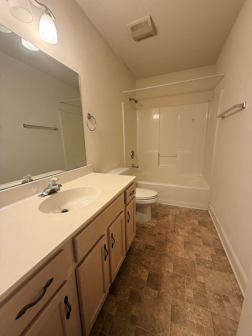 Welcome home to this spacious townhome in the highly sought-after community of Highland Lake Village in Flat Rock, NC. A covered front porch welcomes you into a living space with updated luxury vinyl plank floors, a dining space, and a kitchen. The primary bedroom is located on the main level and is open to a full bath with access from the bedroom as well as the hallway. Upstairs, you will find two more spacious bedrooms with closets and a hall bath with a shower/tub combo. A small fenced-in yard offers some outdoor space. Parking for up to 2 vehicles is located at the back of the house with an easy access to the kitchen through the side entrance.
